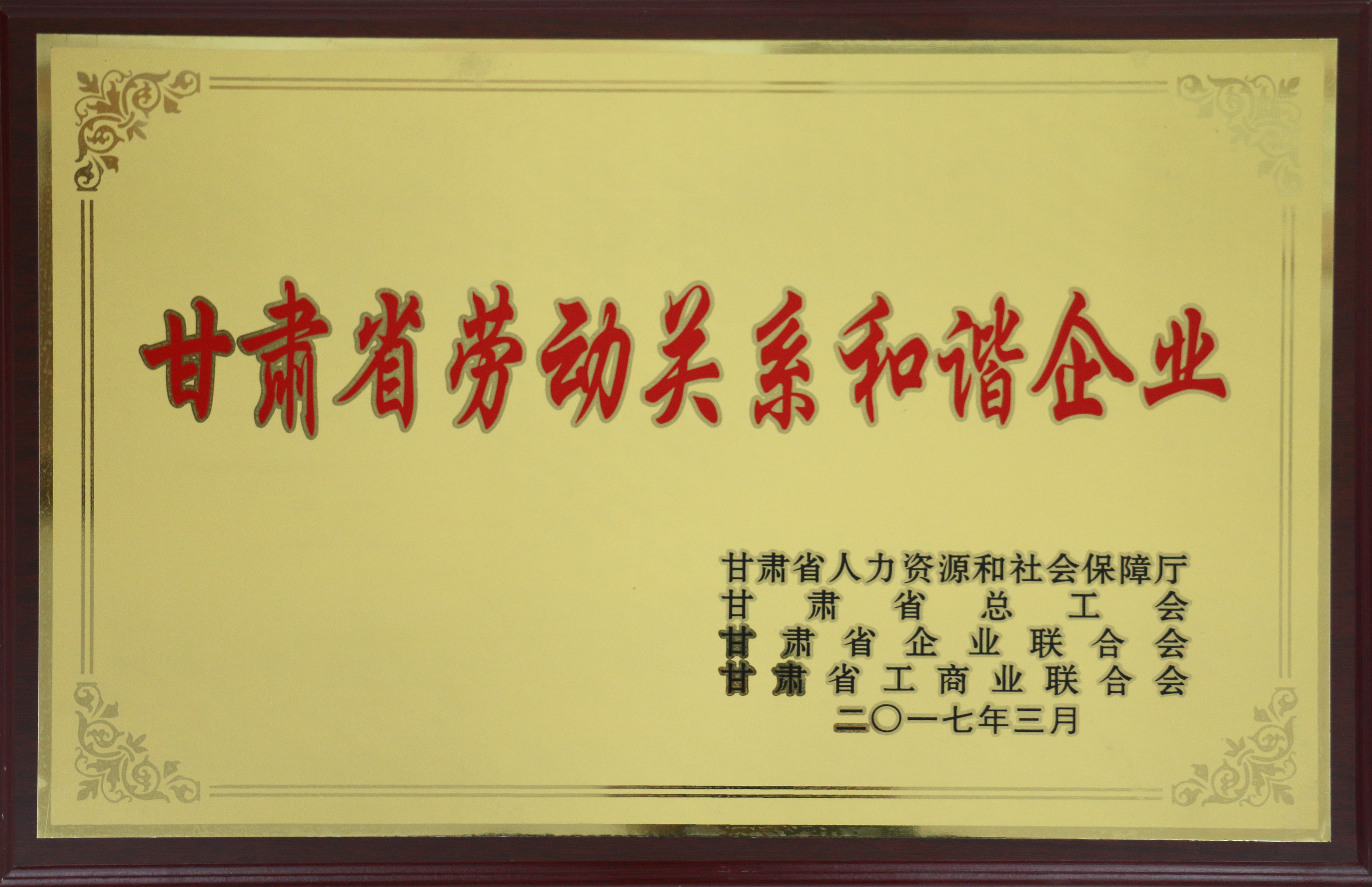甘肃省劳动关系和谐企业